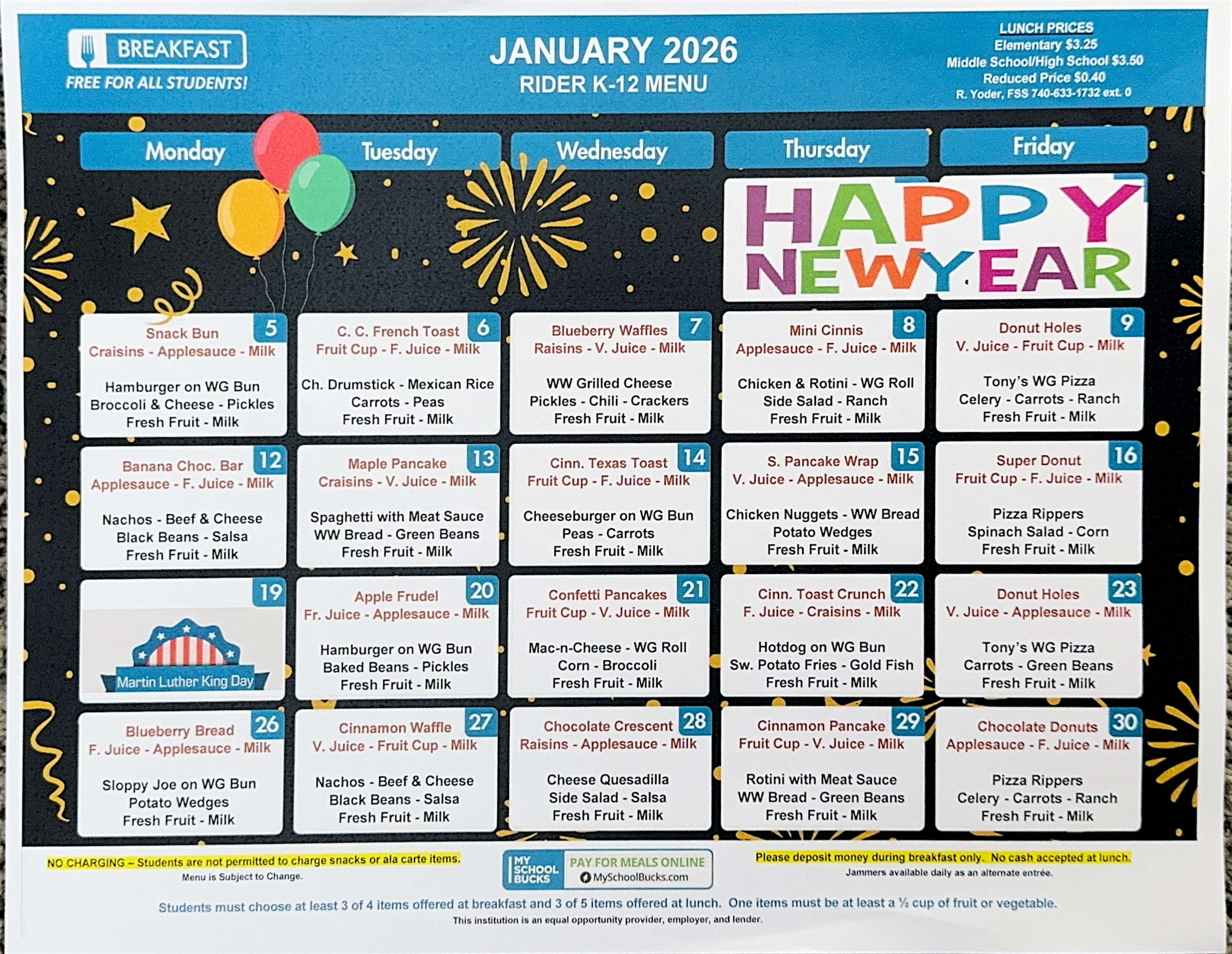 Click HERE to view the nutritional facts for school breakfasts and lunches.