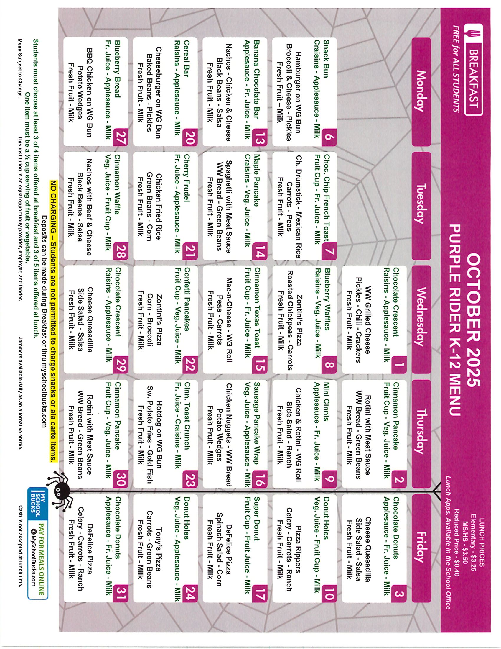 Click HERE to view the nutritional facts for school breakfasts and lunches.